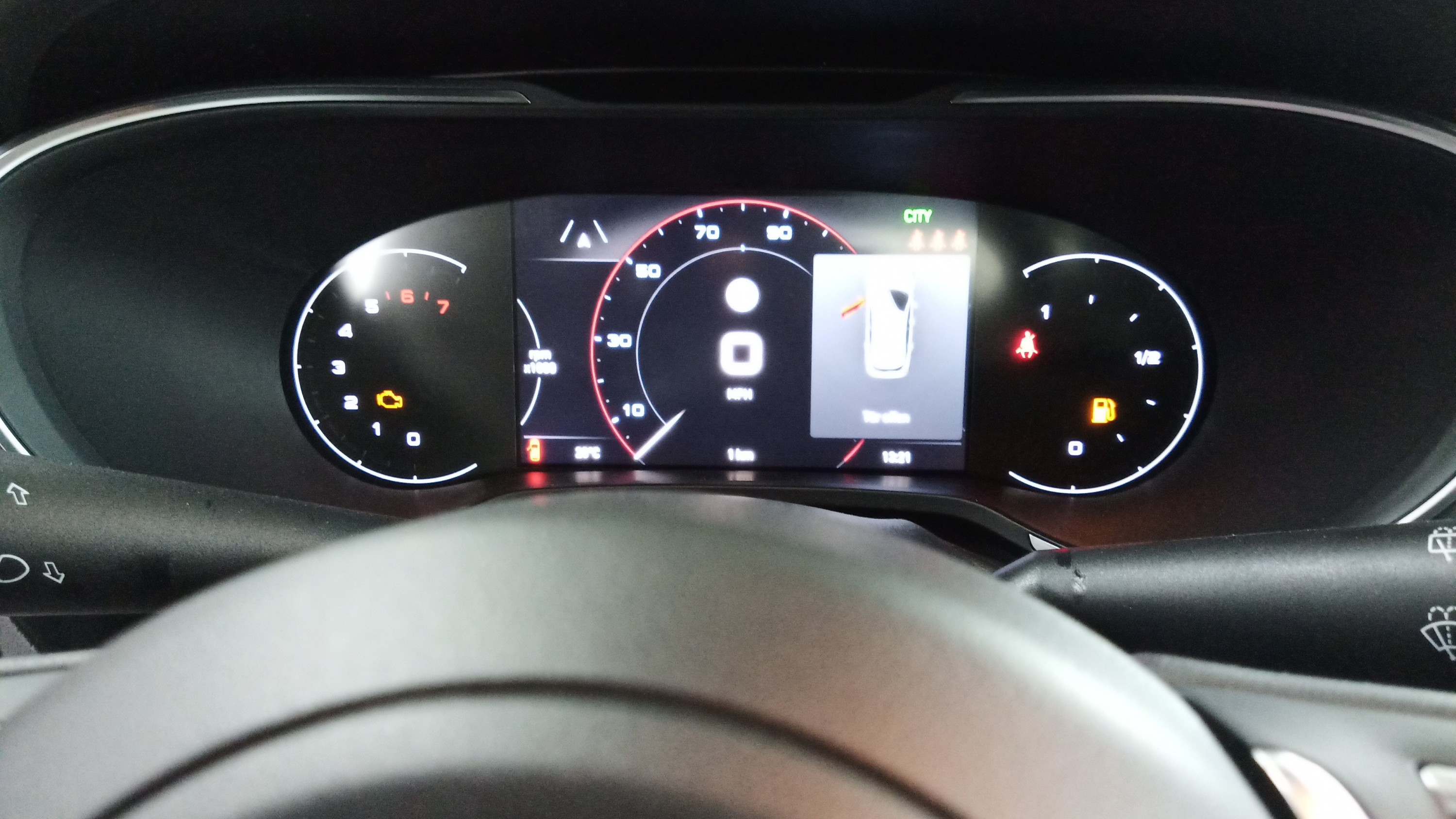 Der mittlere Kranz ist der Tacho, zusätzlich noch mal Digital angezeigt, denke mal mittig vom Tacho kann man wieder verschiedene Sachen anzeigen lassen, wie bei uns in dem mittleren Display.
